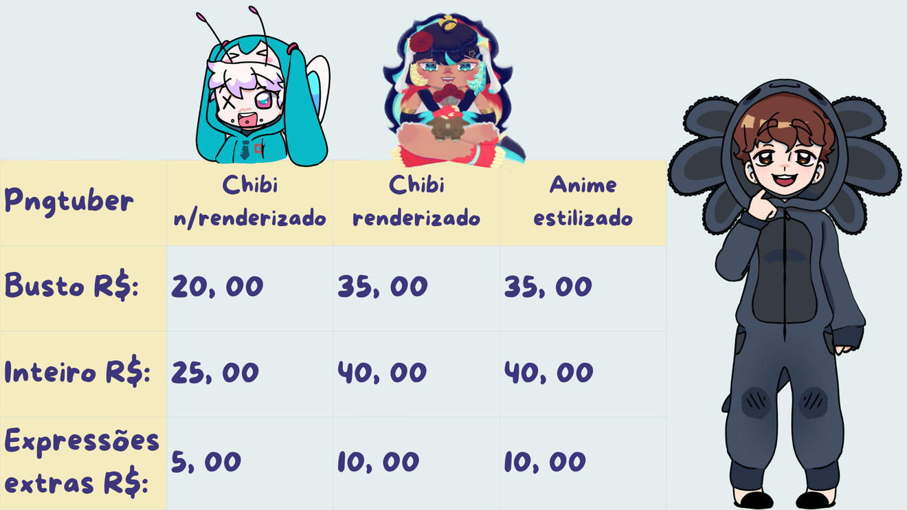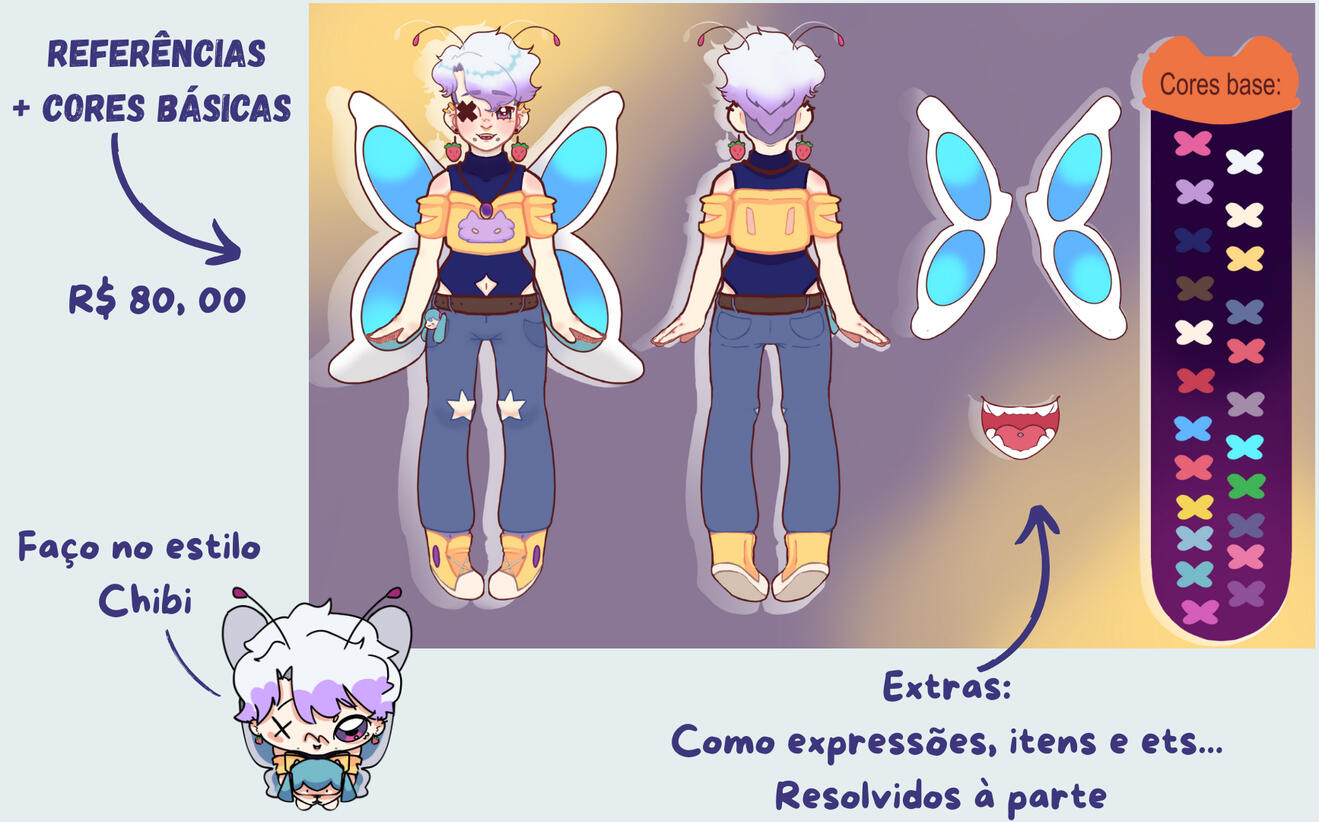 Mudanças poderão ser feitas no esboço, limitando se a três vezes de graça. Alterações extras serão cobradas, valor dependendo da complexidade. Caso o erro seja meu, não cobrarei pela mudança na arte. Após a Lineart, apenas cores base poderão ter uma única alteração sem custo.
